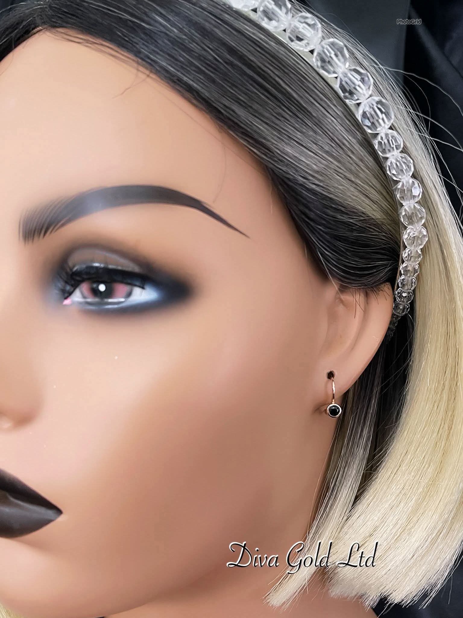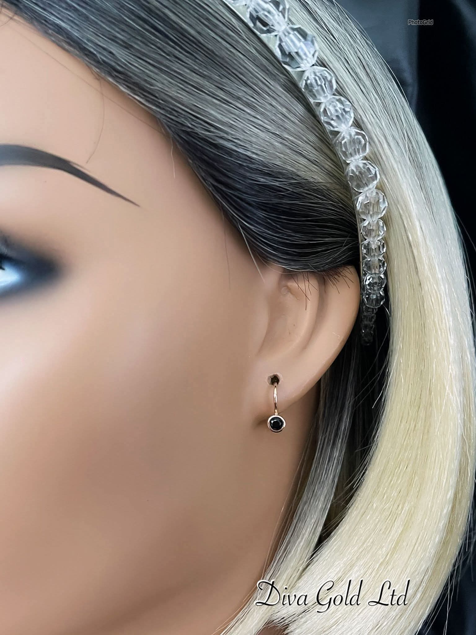 Kids gold 585 earrings with black zircon stone
